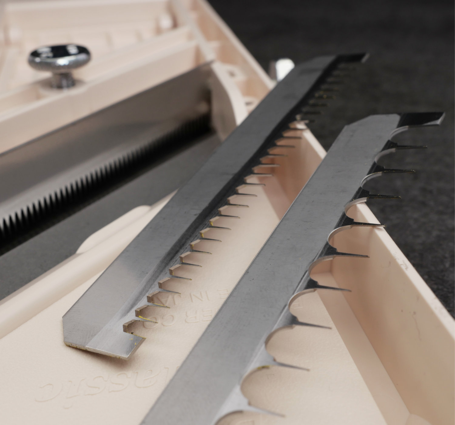 Three julienne blades for three different cut sizes