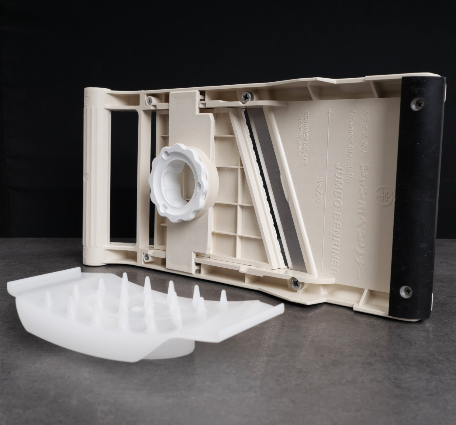 A professional-grade mandoline of the highest quality, designed for slicing vegetables up to 122 mm in width.