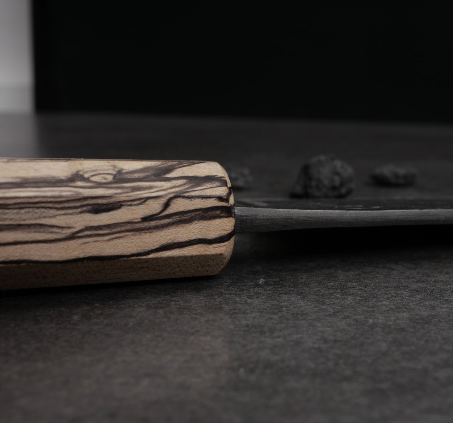 Note: Carbon steel is not stainless! Always wipe the knife dry after use to prevent rust. Over time, the carbon steel will develop a patina in various tones. This is completely normal, but it can be polished away with polishing compound if desired.