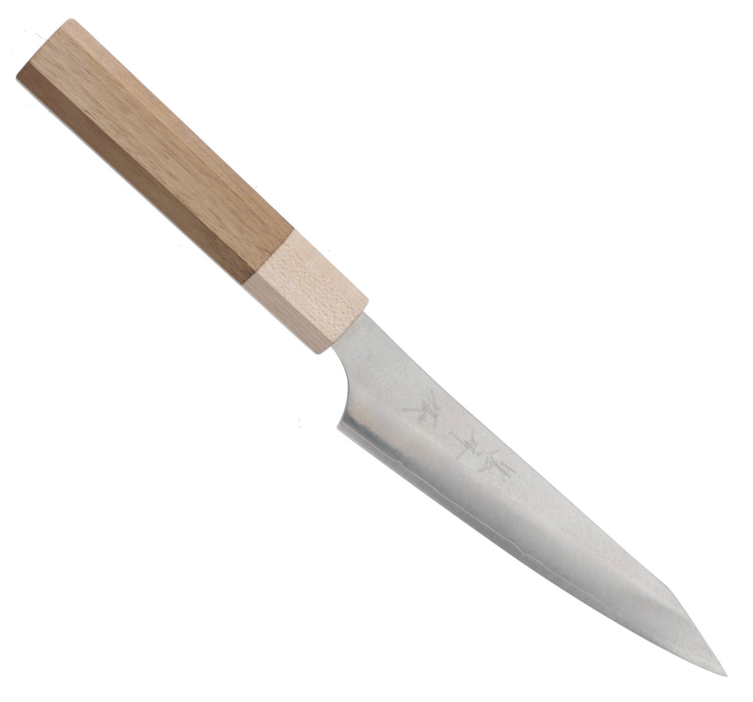 Petty knife with a 132 mm long blade, made from the new hot steel VG-XEOS. This steel is an evolution of the popular VG-10 steel. The knife takes an incredible edge, and the sharpness retention is really good. Blacksmith Yu Kurosaki has become immensely popular and is today one of the most popular makers of handmade knives. It's easy to understand why when you see his elegant design combined with the market's top material choices and precise craftsmanship that makes the knives cut like a dream.