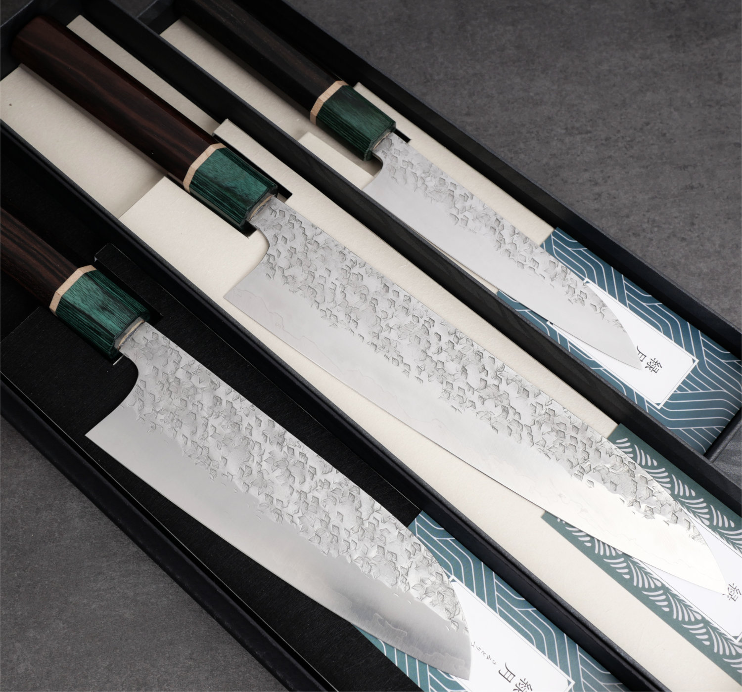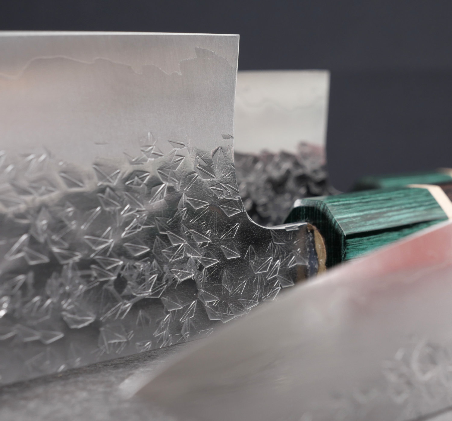 The blade is constructed in a sanmai structure, with a core of SGSTRIX clad in stainless steel. SGSTRIX is a modern powder steel developed for high wear resistance and edge stability.