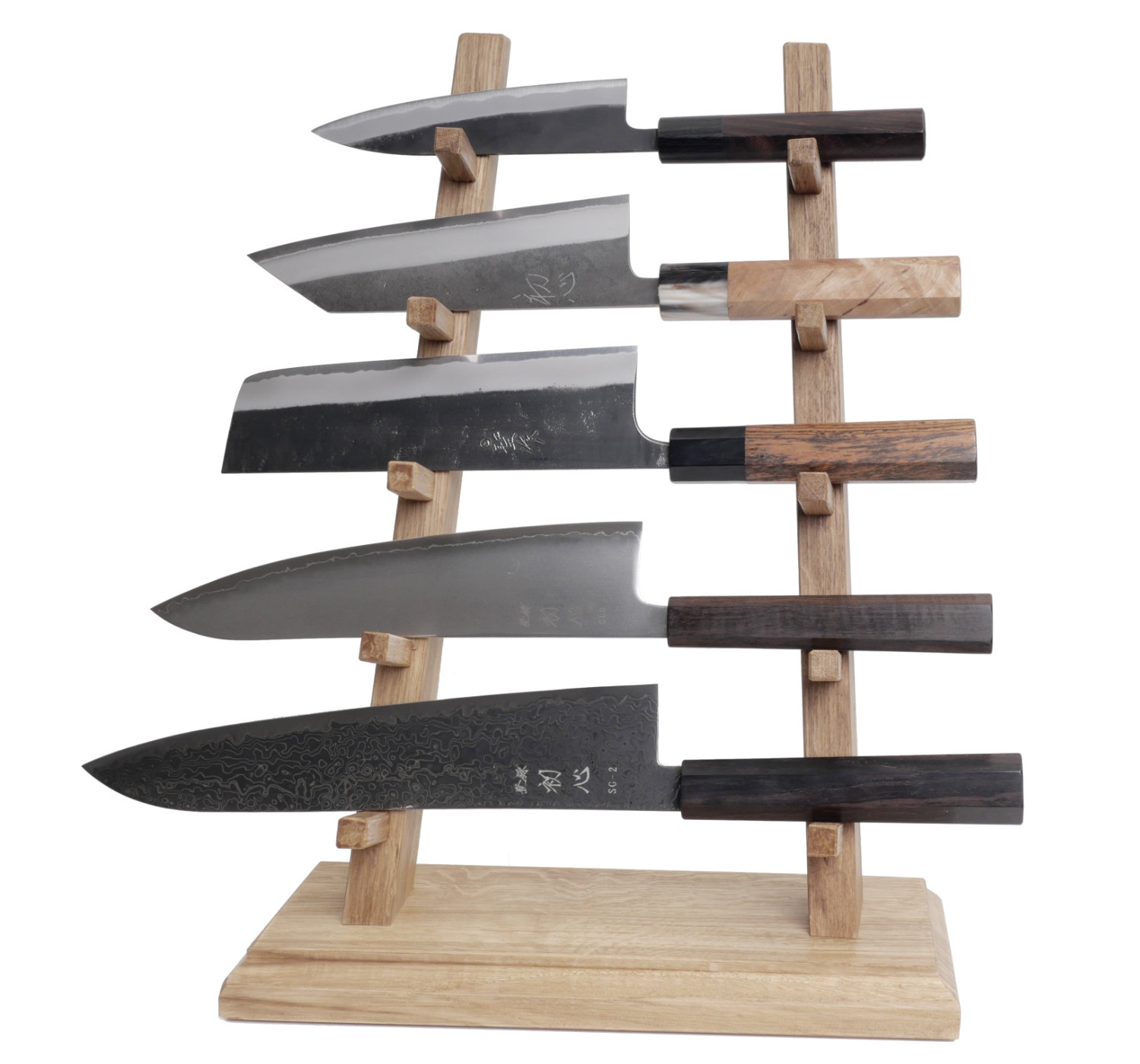A classic Japanese-style knife holder in oak, with space for 5 knives.