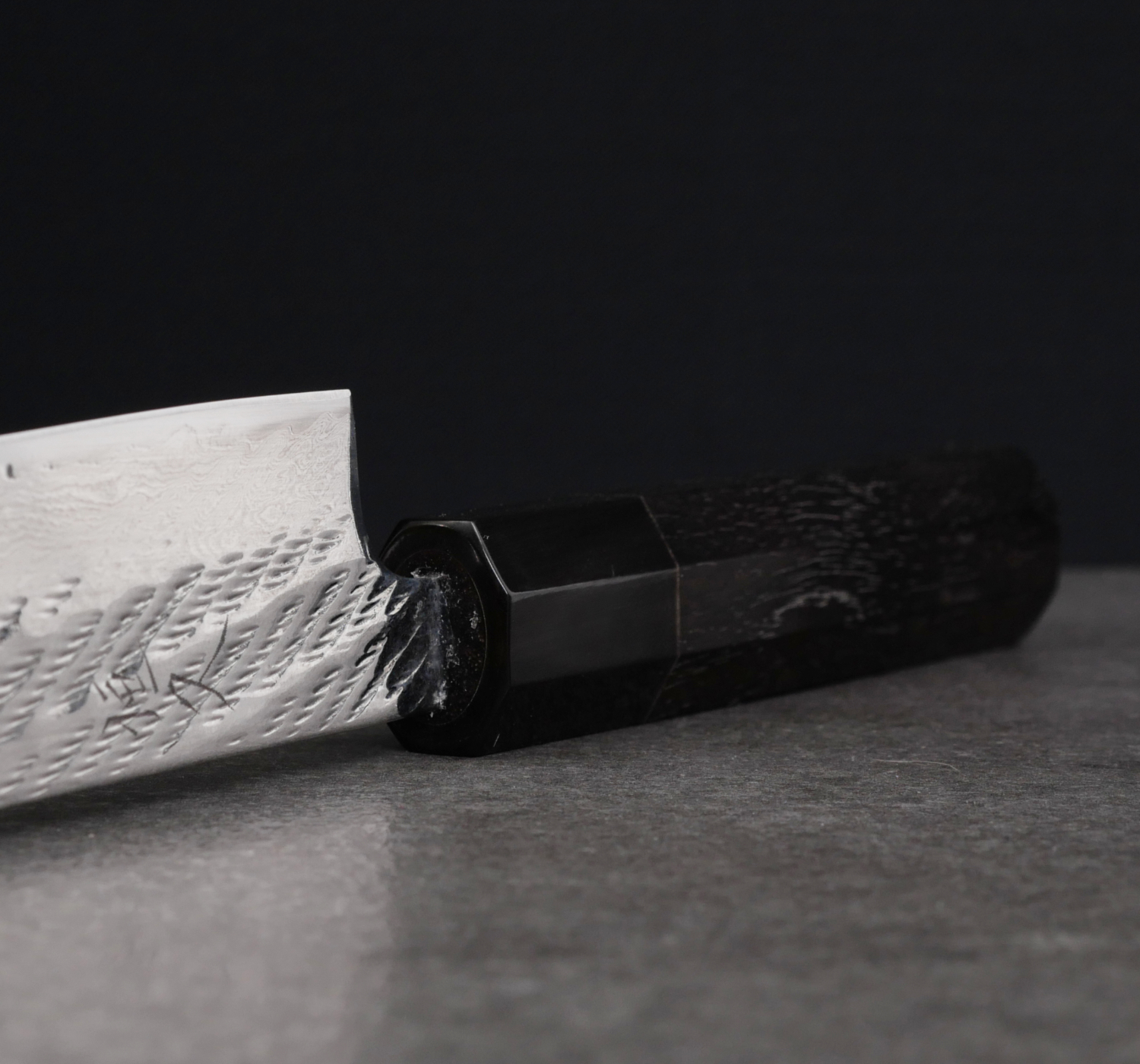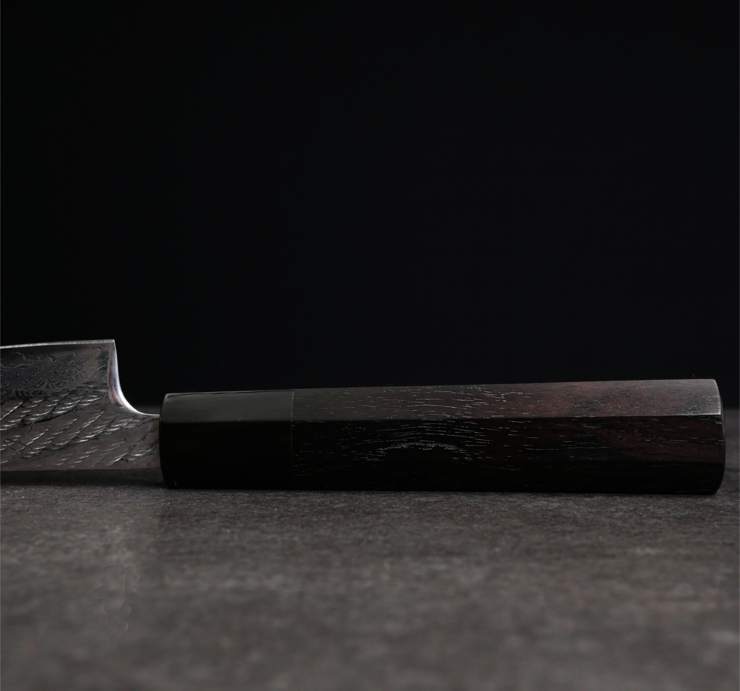 The handle is octagonal and made from ebony with a buffalo horn bolster.