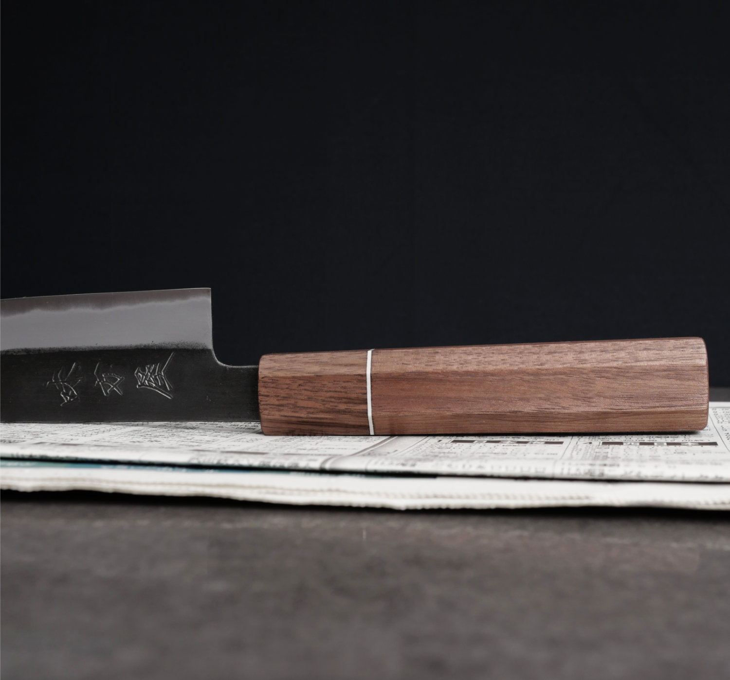 The Ajikataya series is a collaboration between Mutsumi and his father Tsukasa Hinoura. The knives are crafted from Shirogami#2 carbon steel, renowned for its hardness (63 HRC) and ability to achieve a razor-sharp edge. The Hinoura family is one of Japan's premier knife-making families, with all knives hand-forged to perfection.