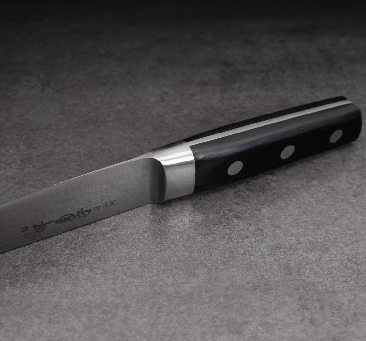 Full tang with triple-riveted construction. The sturdy handle with three rivets offers a secure, well-balanced feel in the hand. You get control and strength without sacrificing comfort.