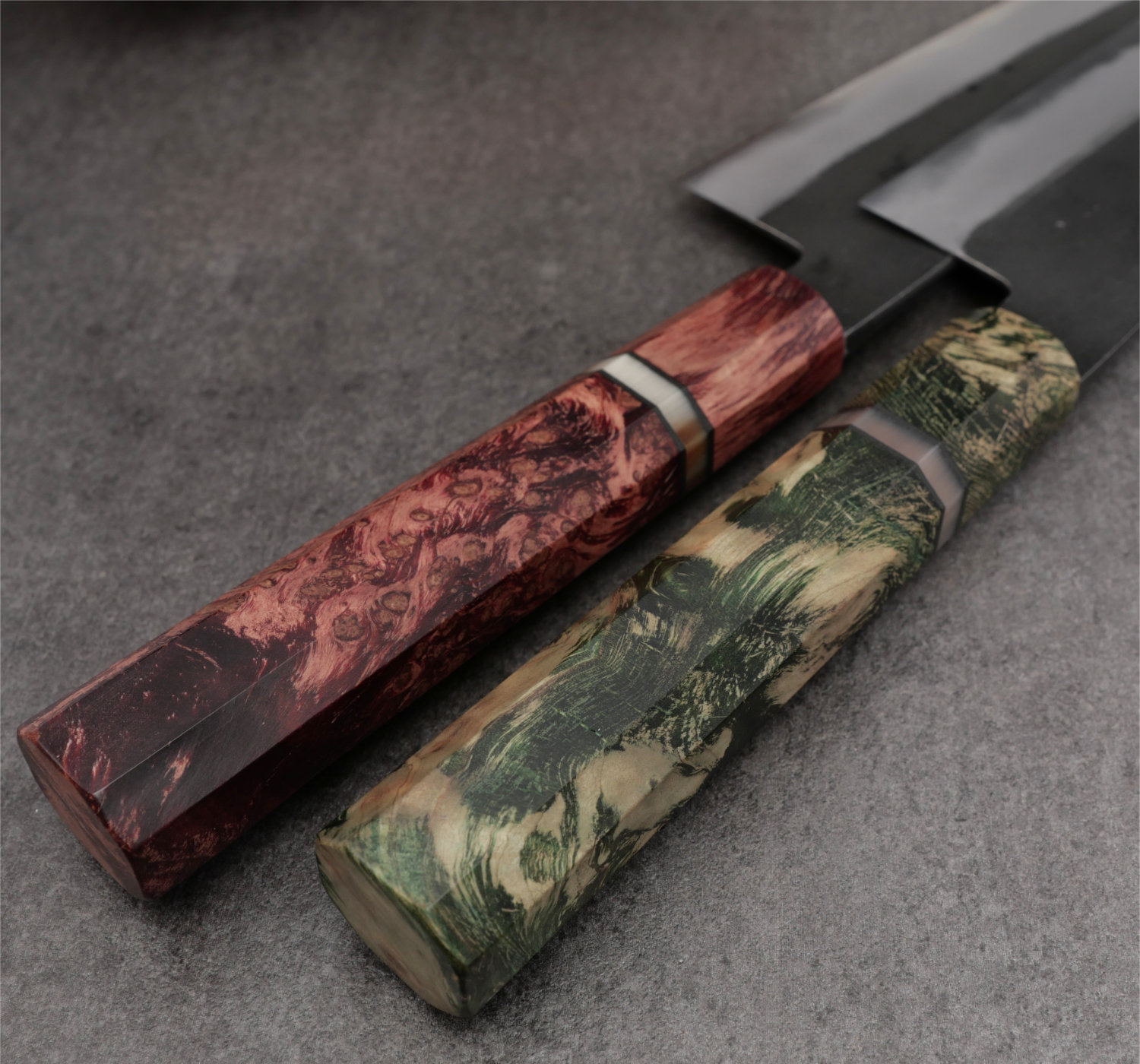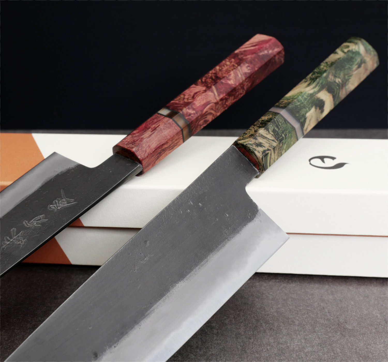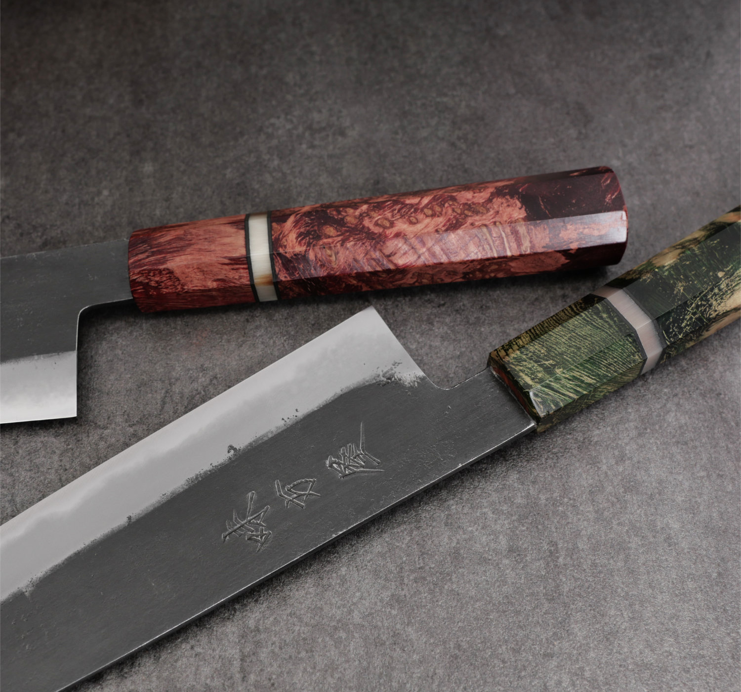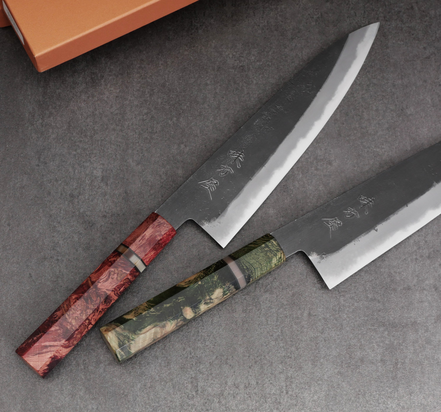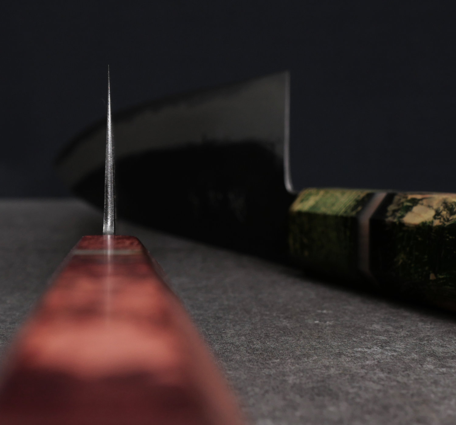 Note: Carbon steel is not stainless! Always dry the knife thoroughly after use to prevent rust. Over time, the carbon steel will develop a patina in various tones—this is completely normal, but it can be polished away with polishing paste if desired.