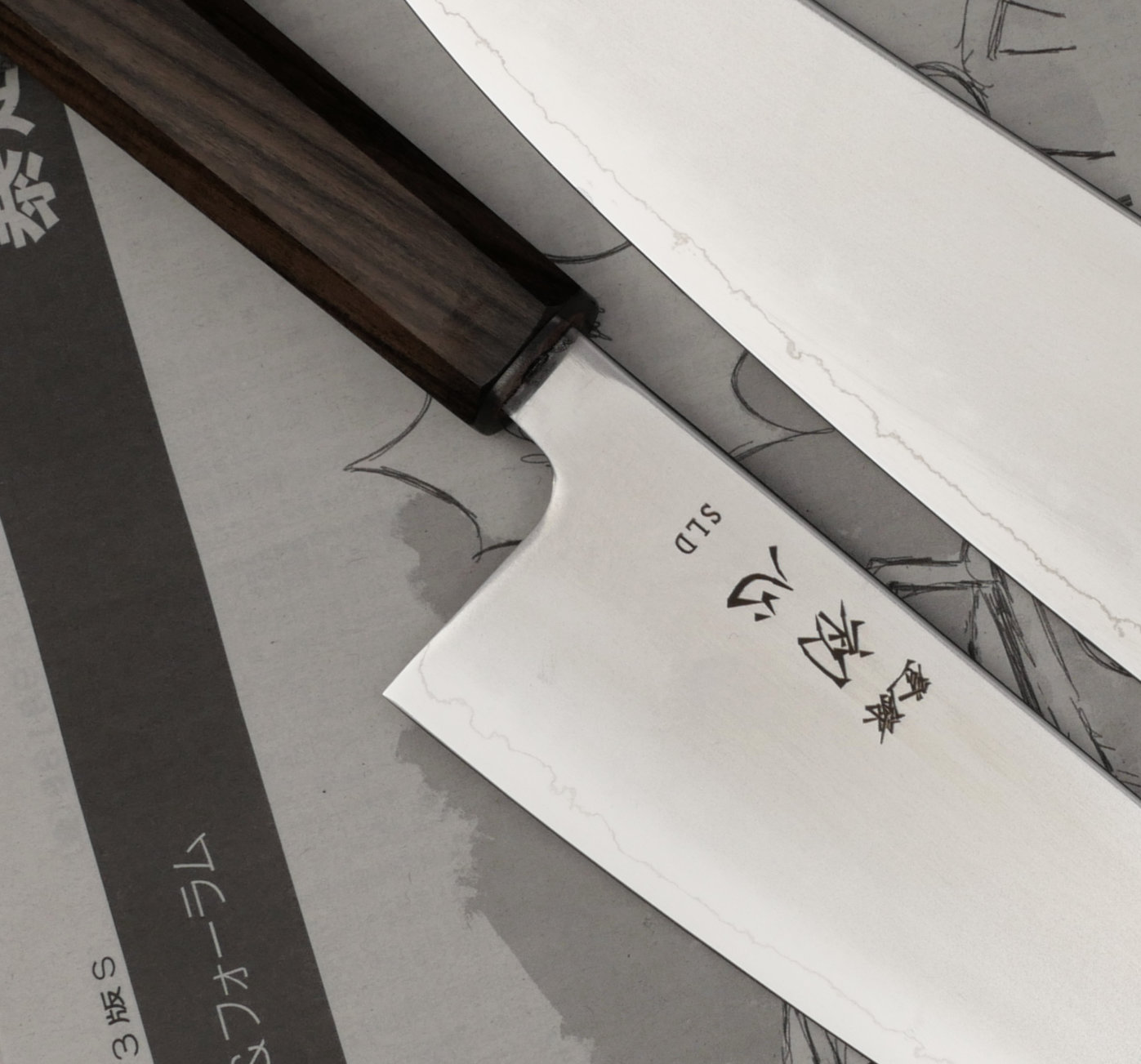 This knife series is the result of a close collaboration between Hatsukokoro and one of the largest and most respected knife makers in Seki City, Japan. We are impressed by this knife. The fine SLD steel, beautiful finish, thin blades, and excellent price make it highly recommended by us.