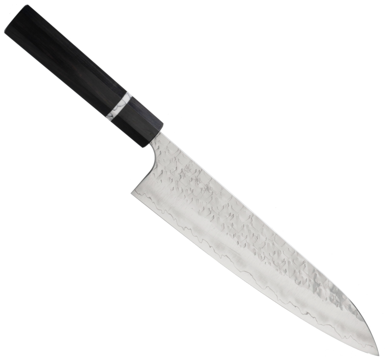 Yoshimi Kato primarily works with double-beveled blades and consistently adheres to his own distinctive forging technique—a method he has refined over many years. The result is knives with exceptional balance, sharpness, and character, produced by a craftsman who is as pleasant as he is skilled.