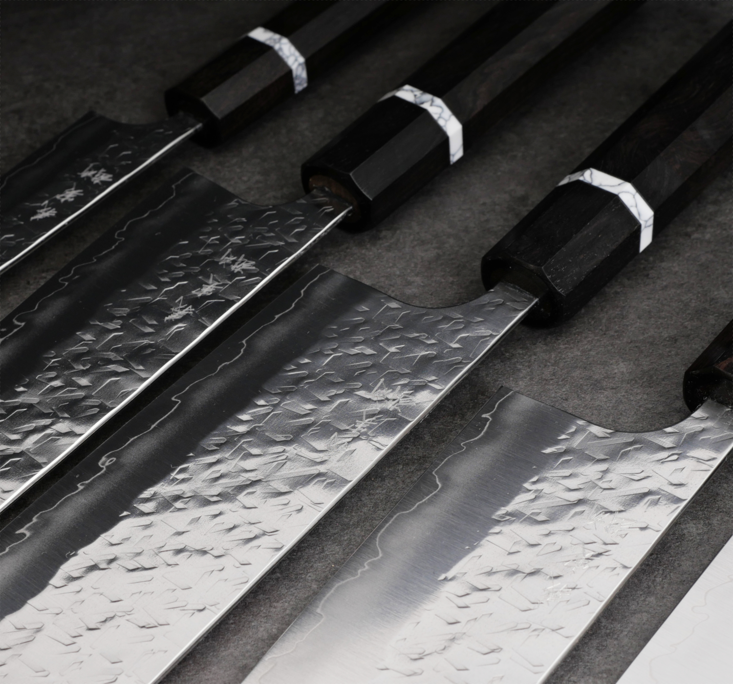 Yoshimi Kato primarily works with double-beveled blades and consistently adheres to his own distinctive forging technique—a method he has refined over many years. The result is knives with exceptional balance, sharpness, and character, produced by a craftsman who is as pleasant as he is skilled.