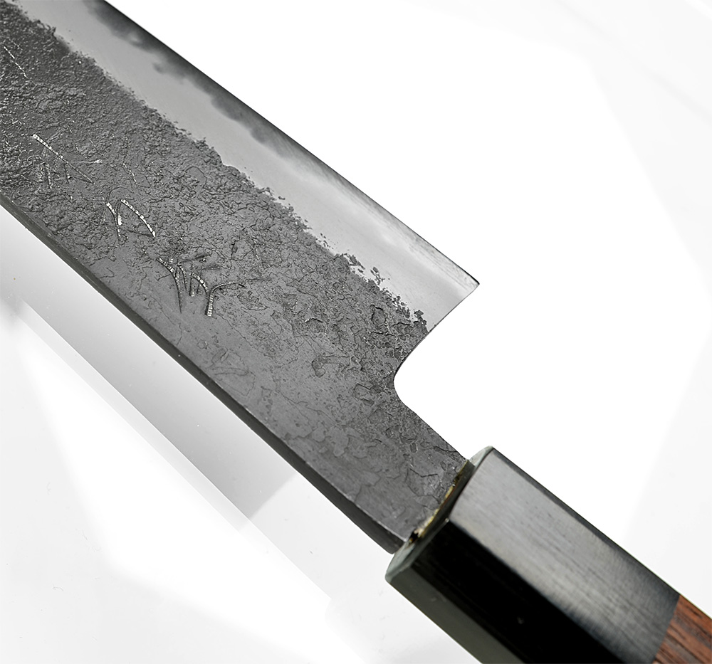Hakata with 187 mm long blade. The surface is a coarse nashiji finish with a black look (kurouchi).