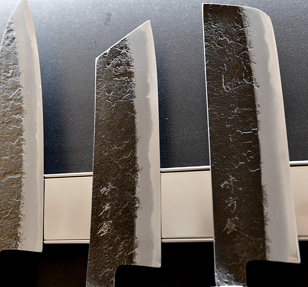 To finish off the design, each blade receives a silky smooth kasumi finish. Its a greyish surface between the edge and the black blade side.