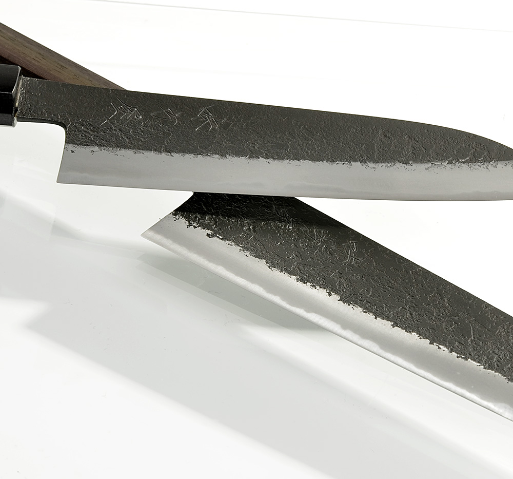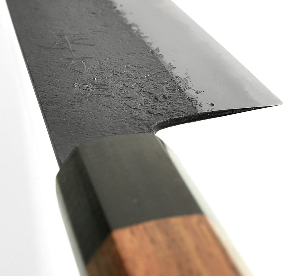 Note: Carbon steel is not stainless! Be sure to wipe the blade dry immediately after use to avoid rusting of the blade.