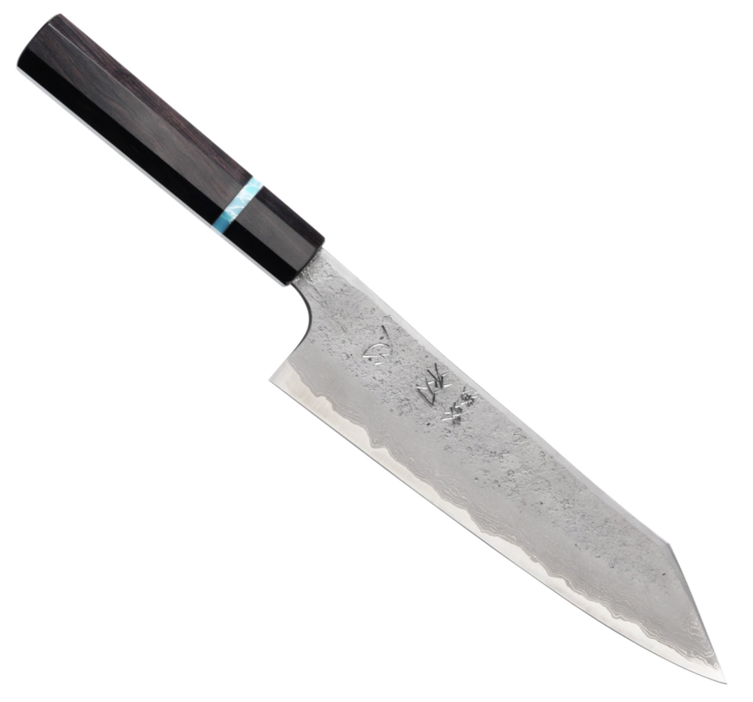 A Japanese kiritsuke chef’s knife with 196 mm blade length from tip to heel. Powerful, precise and elegant.