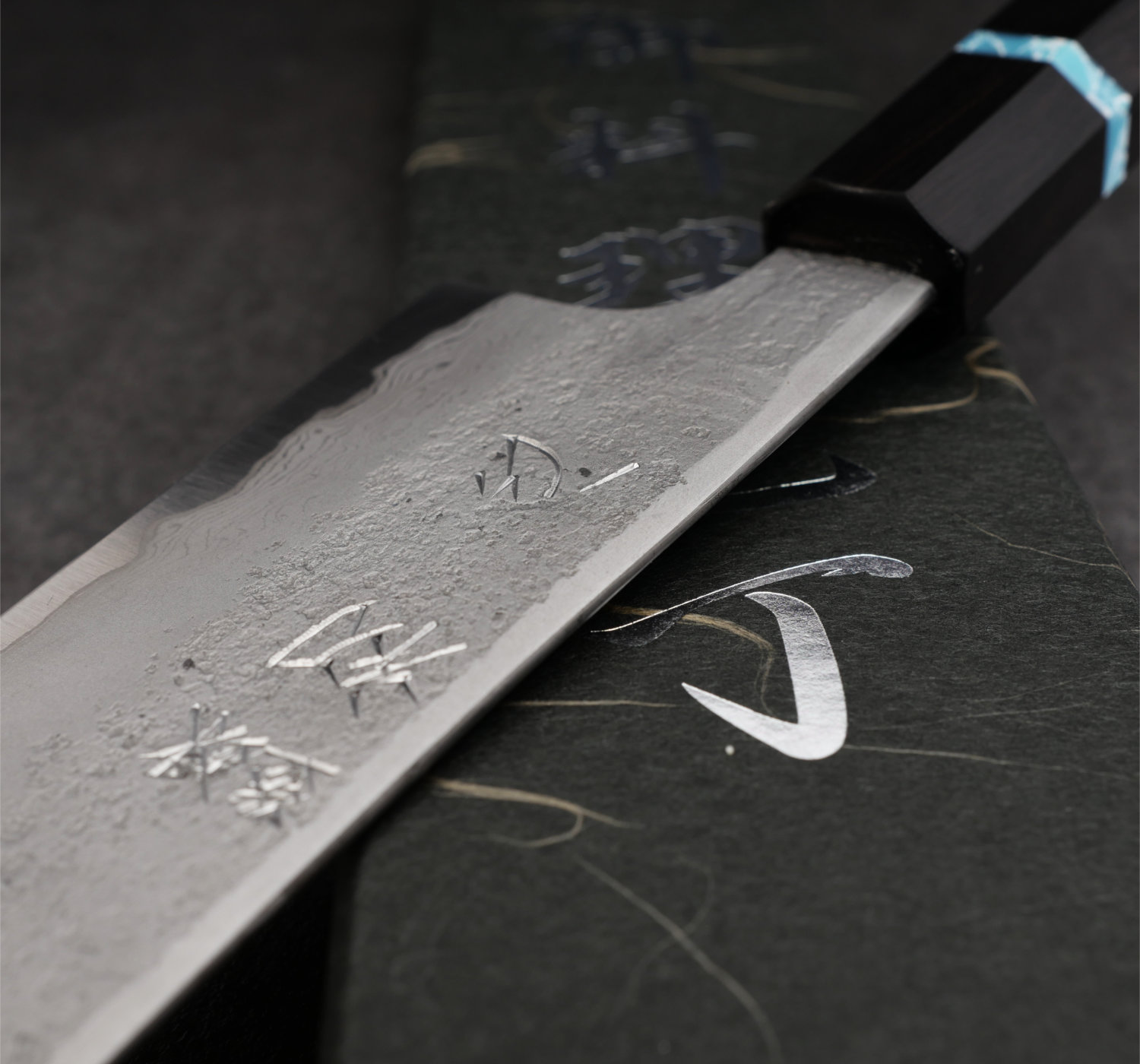 The Hatsukokoro Ryusui series represents the meeting of tradition and aesthetics. Each knife is hand-forged by skilled Japanese craftsmen and features the beautiful Ryusui pattern; A flowing damascus design symbolizing running water. The name Ryusui (流水) literally means “running water.”