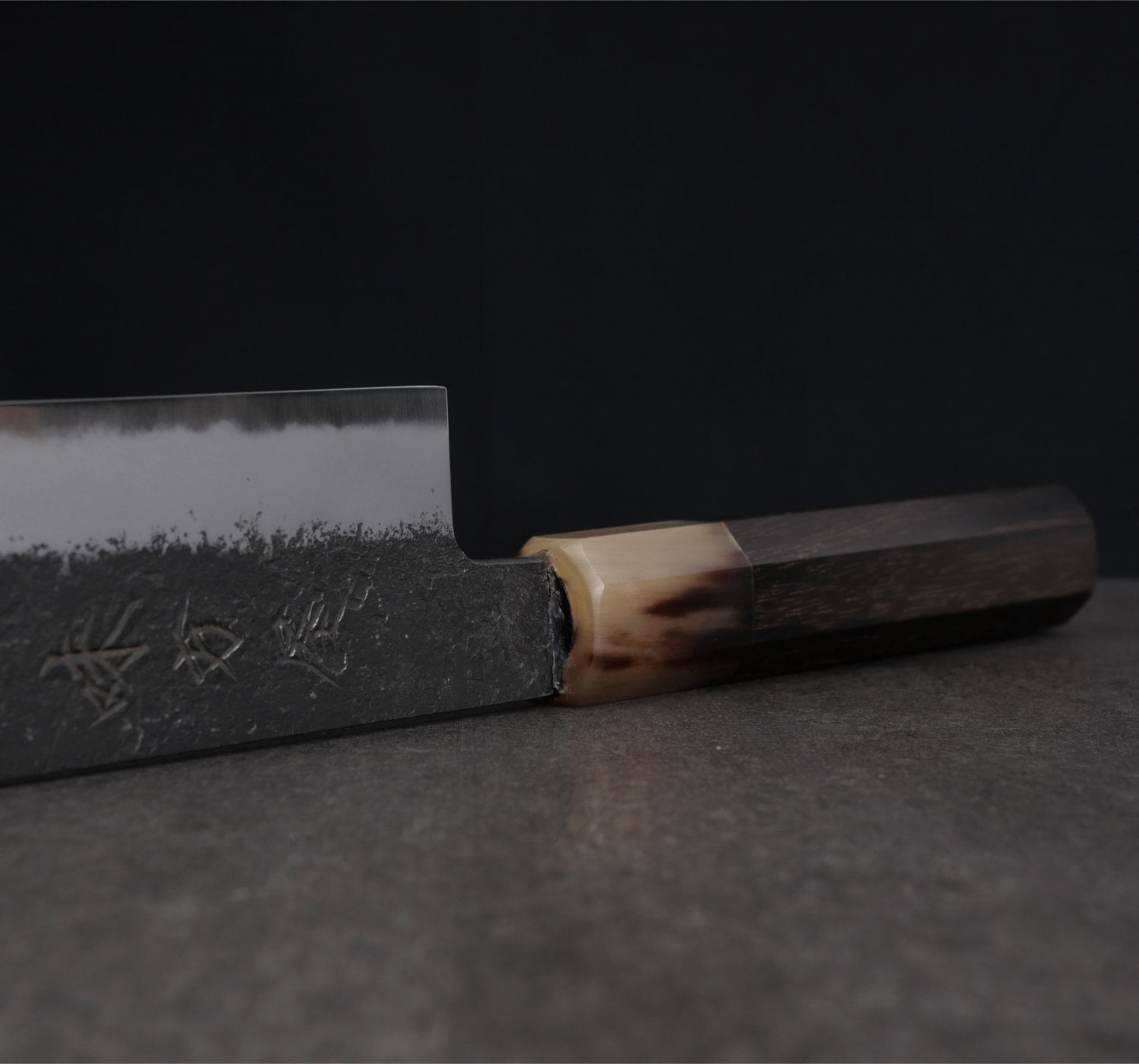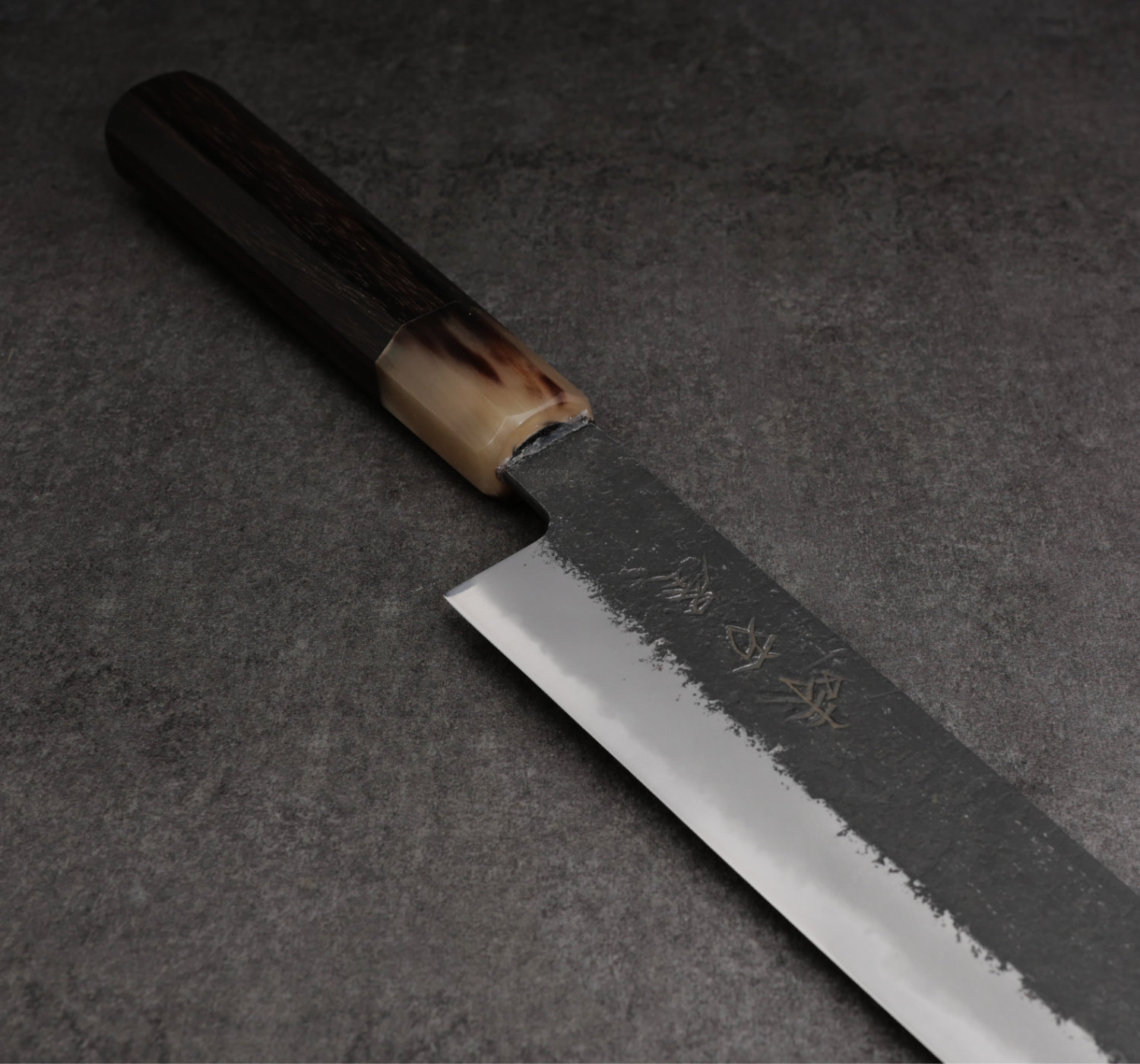 To finish off the design, each blade receives a silky smooth kasumi finish. Its a greyish surface between the edge and the black blade side.