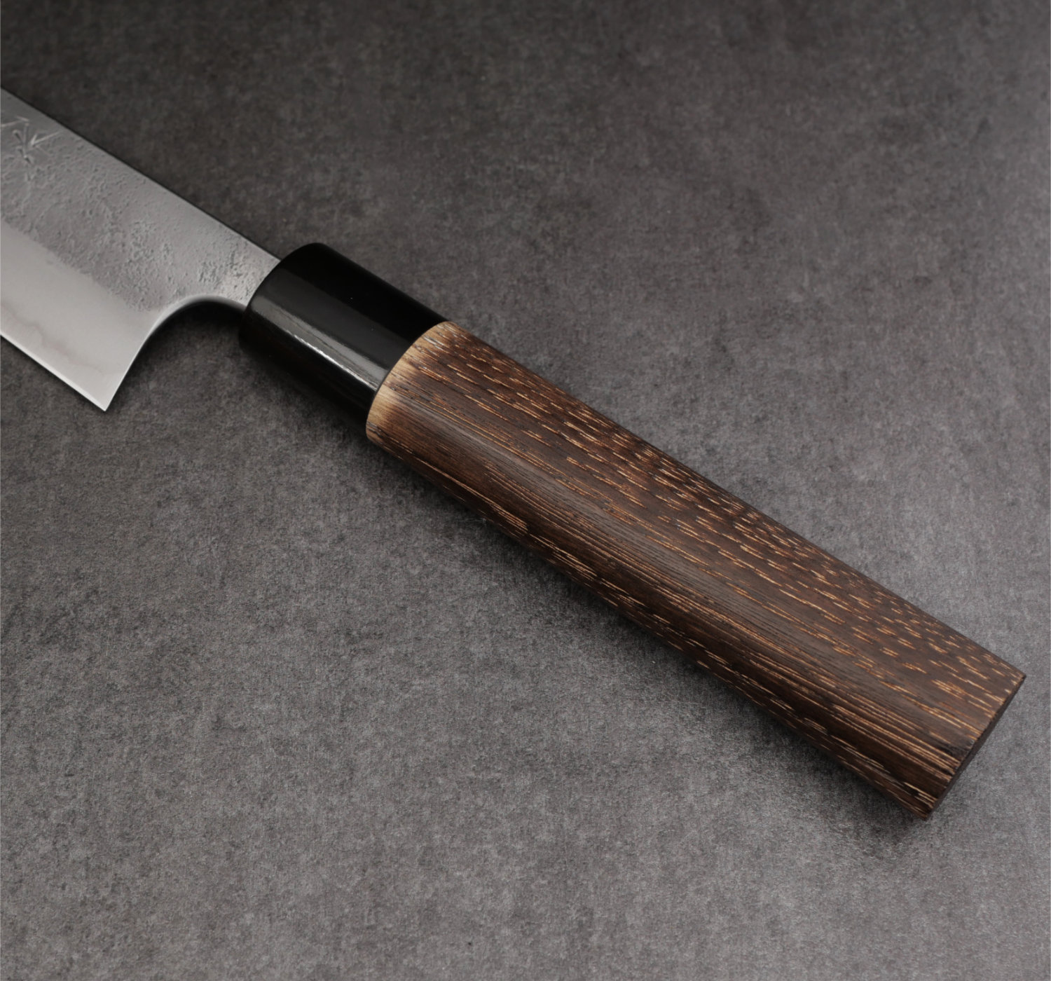 Tanaka Kama Kogyo is the owner of Matsubara’s forge in Nagasaki. He is the 4th generation blacksmith in his family and forges all blades by hand with great precision. The quality of the edge heavily depends on hardening and heat treatment, and we can personally attest—having used Matsubara’s knives—that the steel quality is truly exceptional. The sharpness retention and cutting performance of Matsubara’s knives are hard to beat.