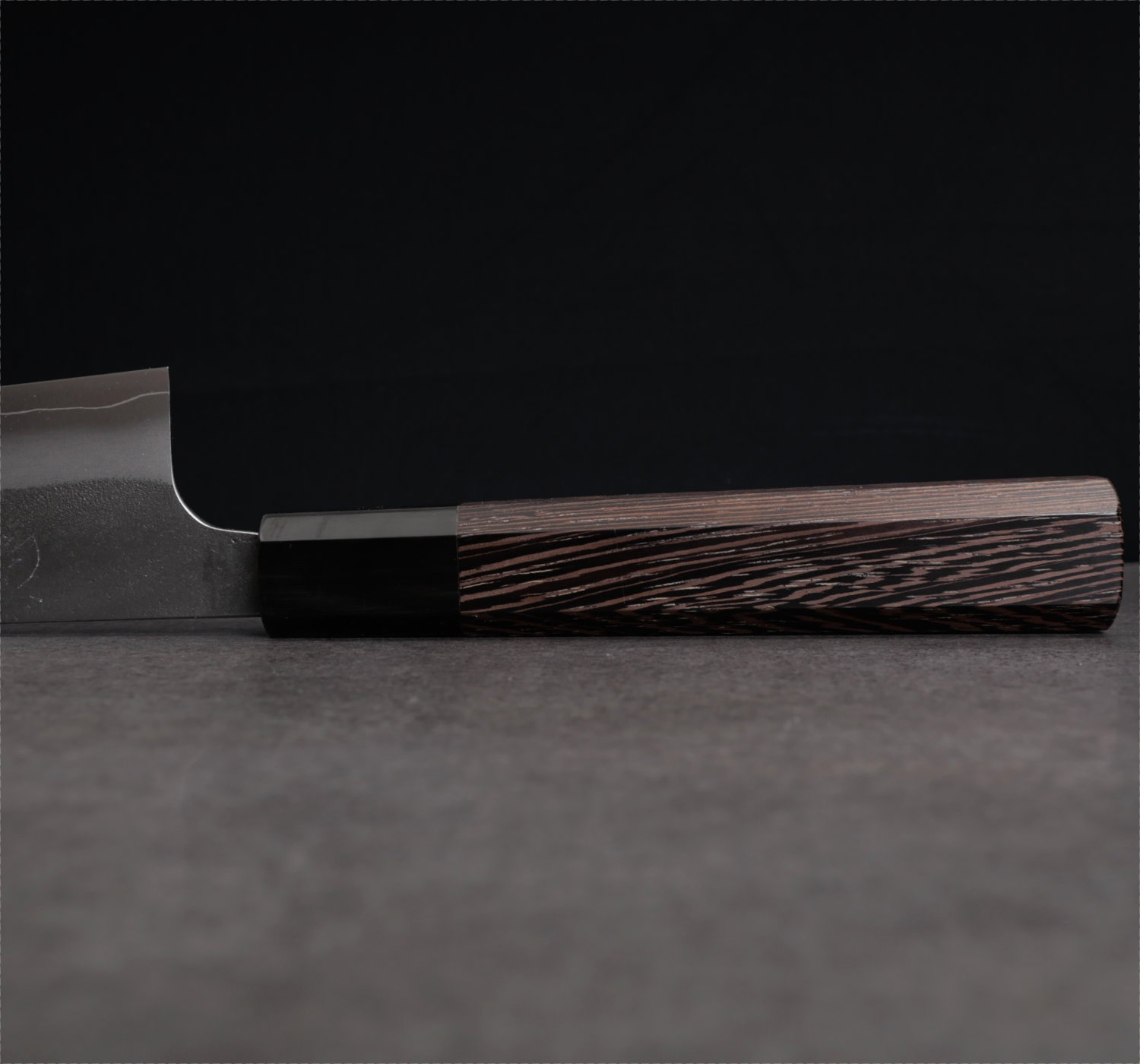 Yoshikane manufactures their knives in Sanjo, Japan. The knives are characterized by a relatively thick spine combined with extremely thin, refined cutting edges. They cut exceptionally well, but are also sensitive to rough handling. This is a knife that delivers performance at the absolute highest level. Highly recommended.