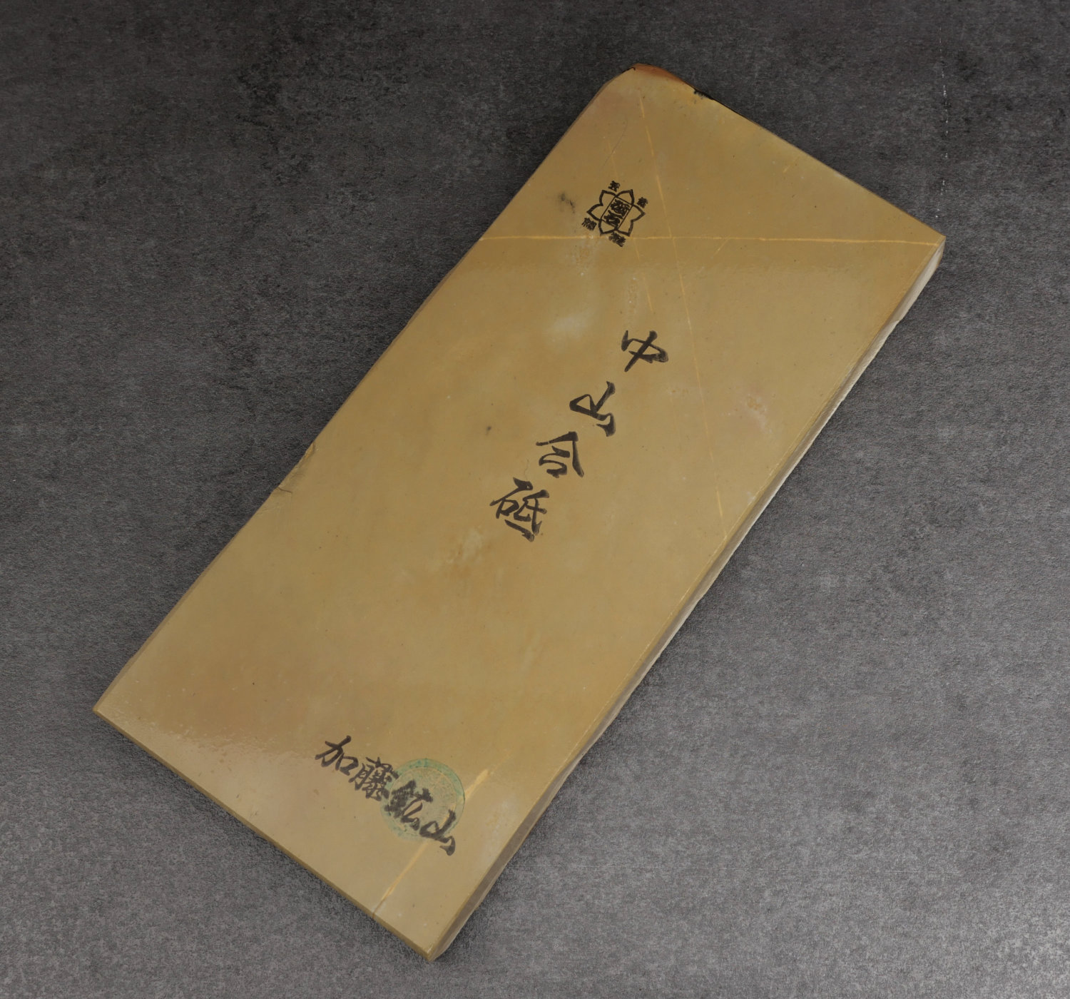 A large and hard, yet creamy Nakayama natural stone, perfect for kasumi polishing, which creates a high contrast between the jigane (soft iron) and hagane (hard steel).