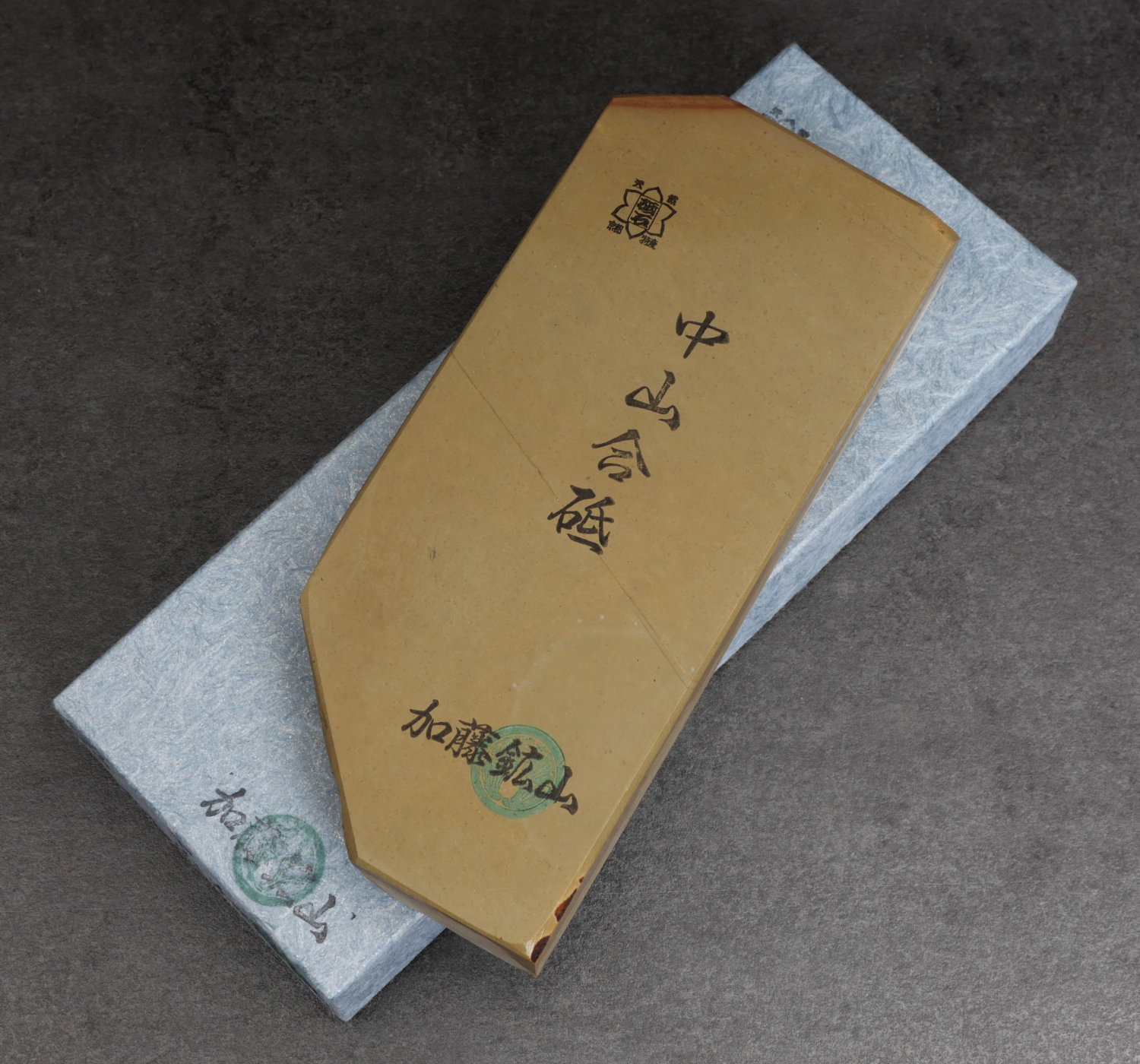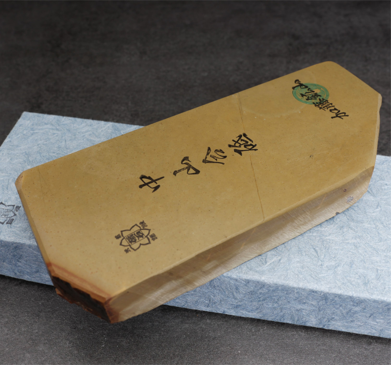 A large and hard, yet creamy Nakayama natural stone, perfect for kasumi polishing, which creates a high contrast between the jigane (soft iron) and hagane (hard steel).