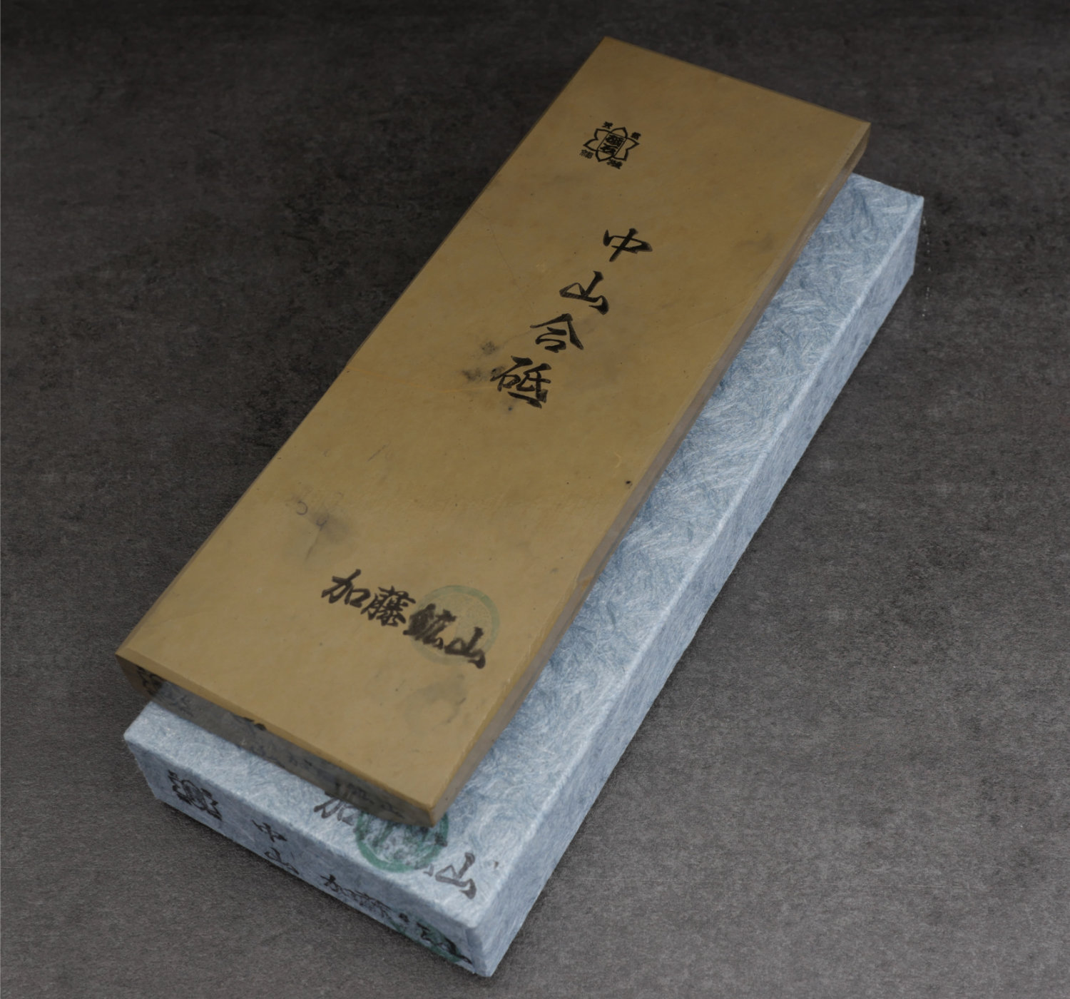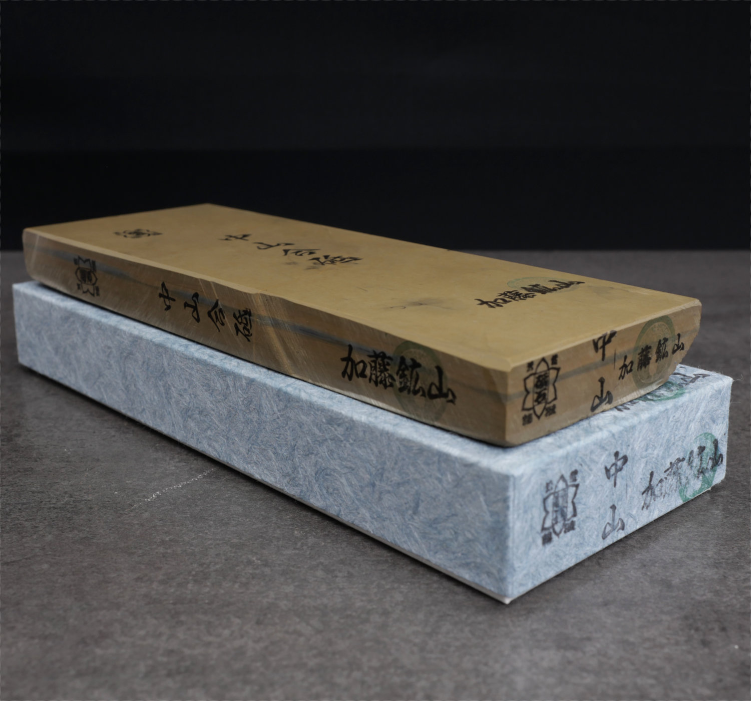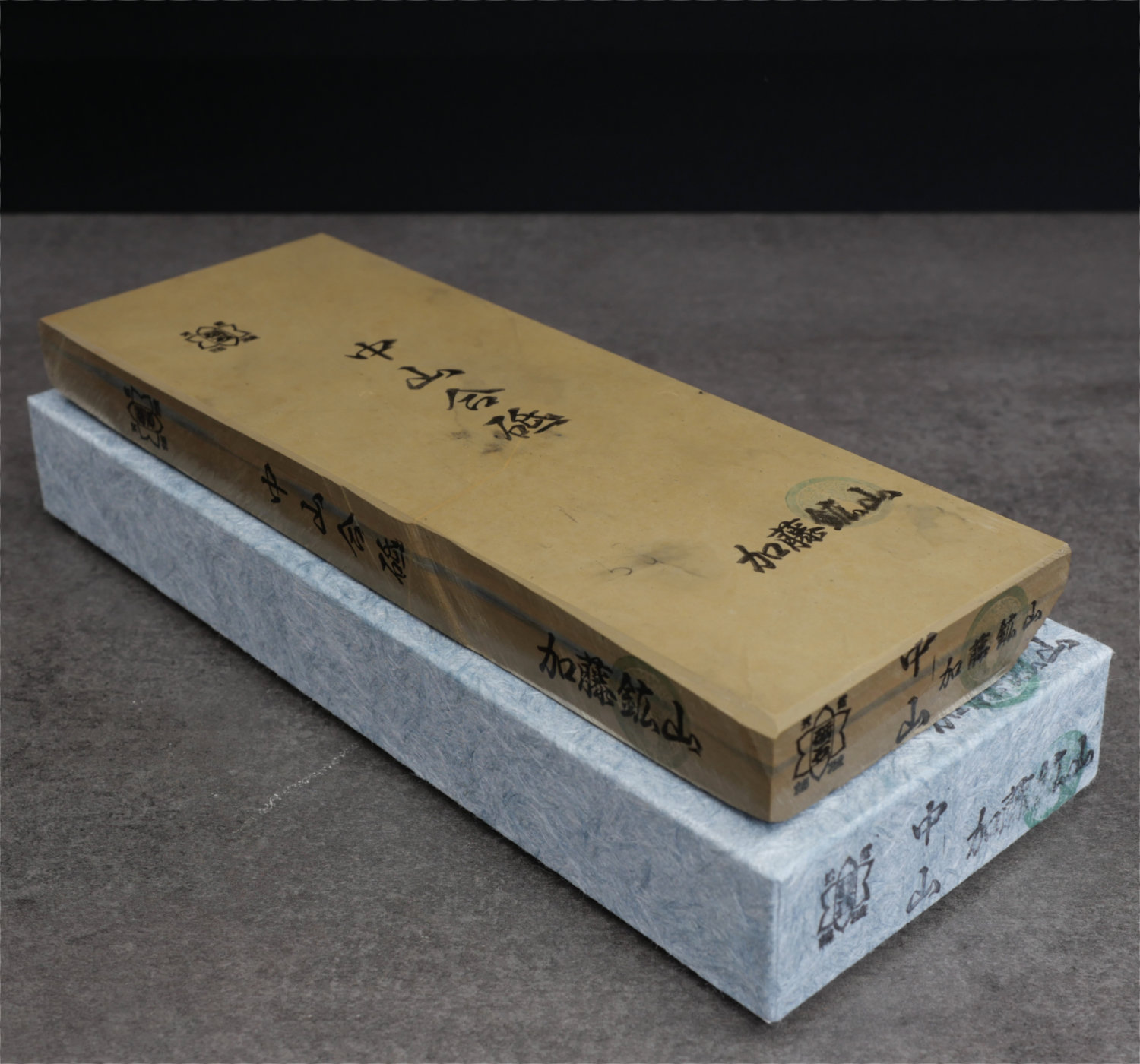 A large and hard, yet creamy Nakayama natural stone, perfect for kasumi polishing, which creates a high contrast between the jigane (soft iron) and hagane (hard steel).