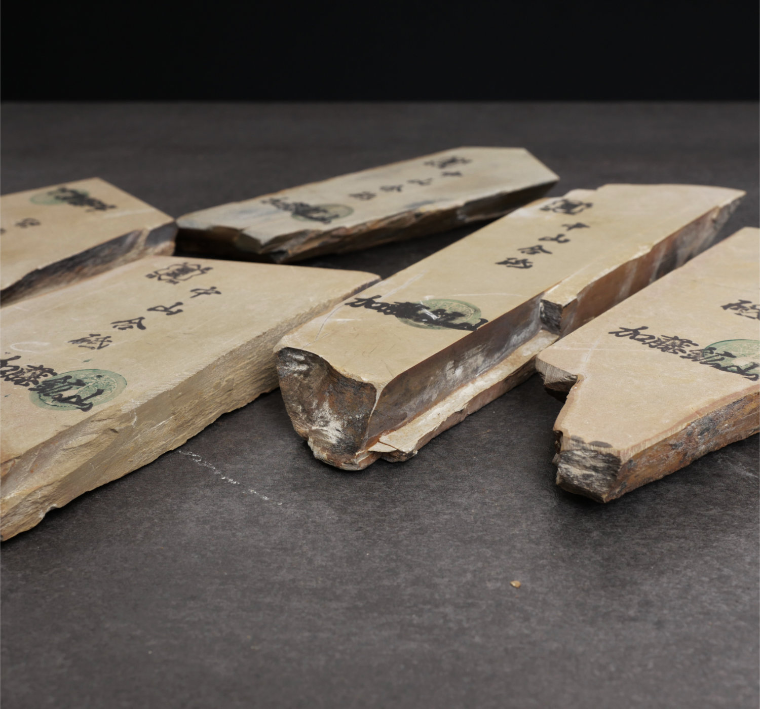 The sensation while sharpening is reminiscent of working on frozen butter: quiet, hard, and creamy-smooth. The finish is medium-light kasumi with high contrast and a silky texture. When we tested the stone on a kiridashi, we were able to apply significant pressure without scratching the surface. In other words, an excellent kasumi stone.