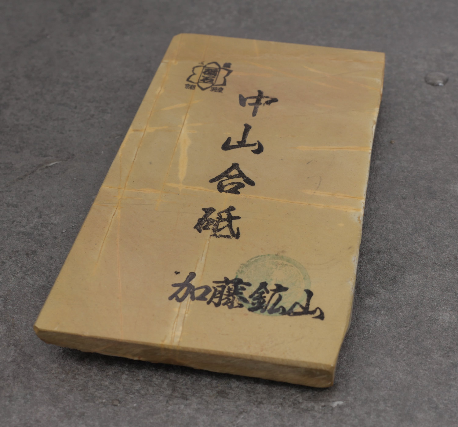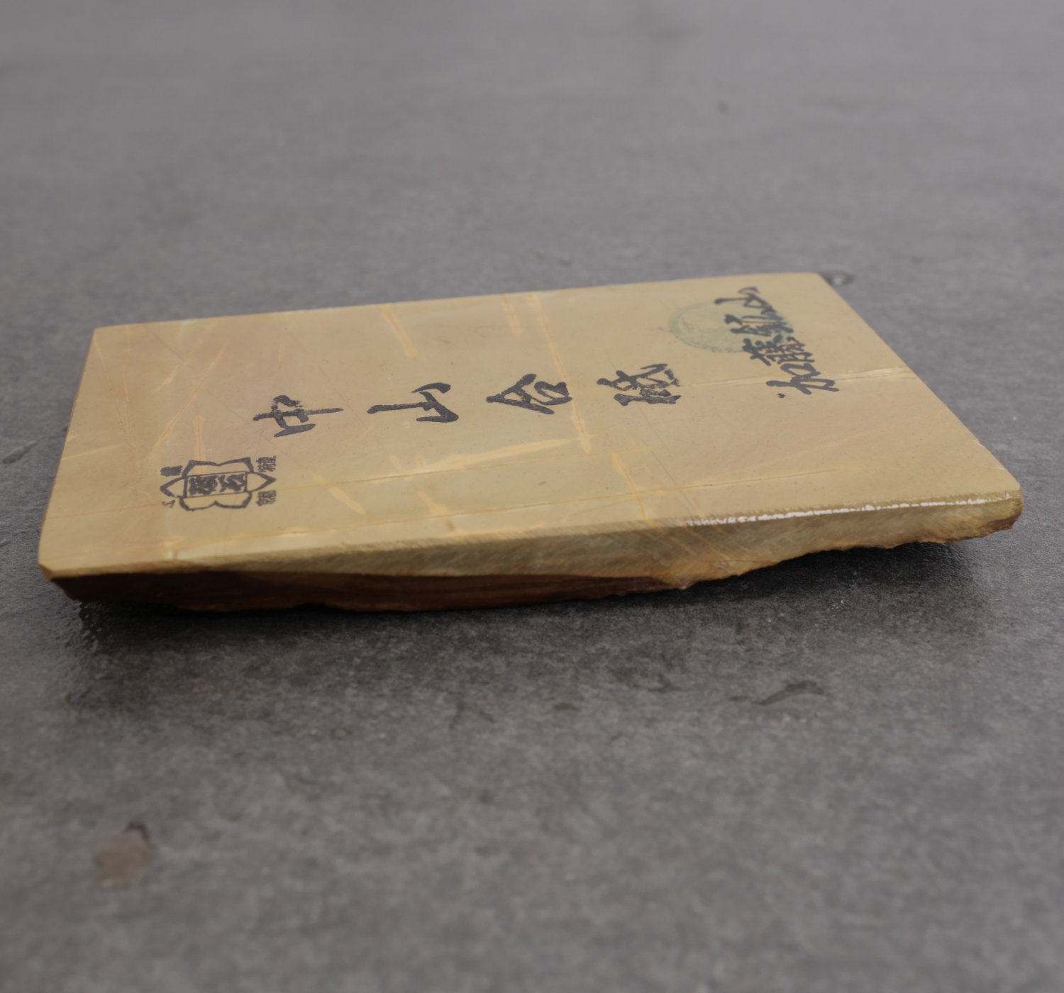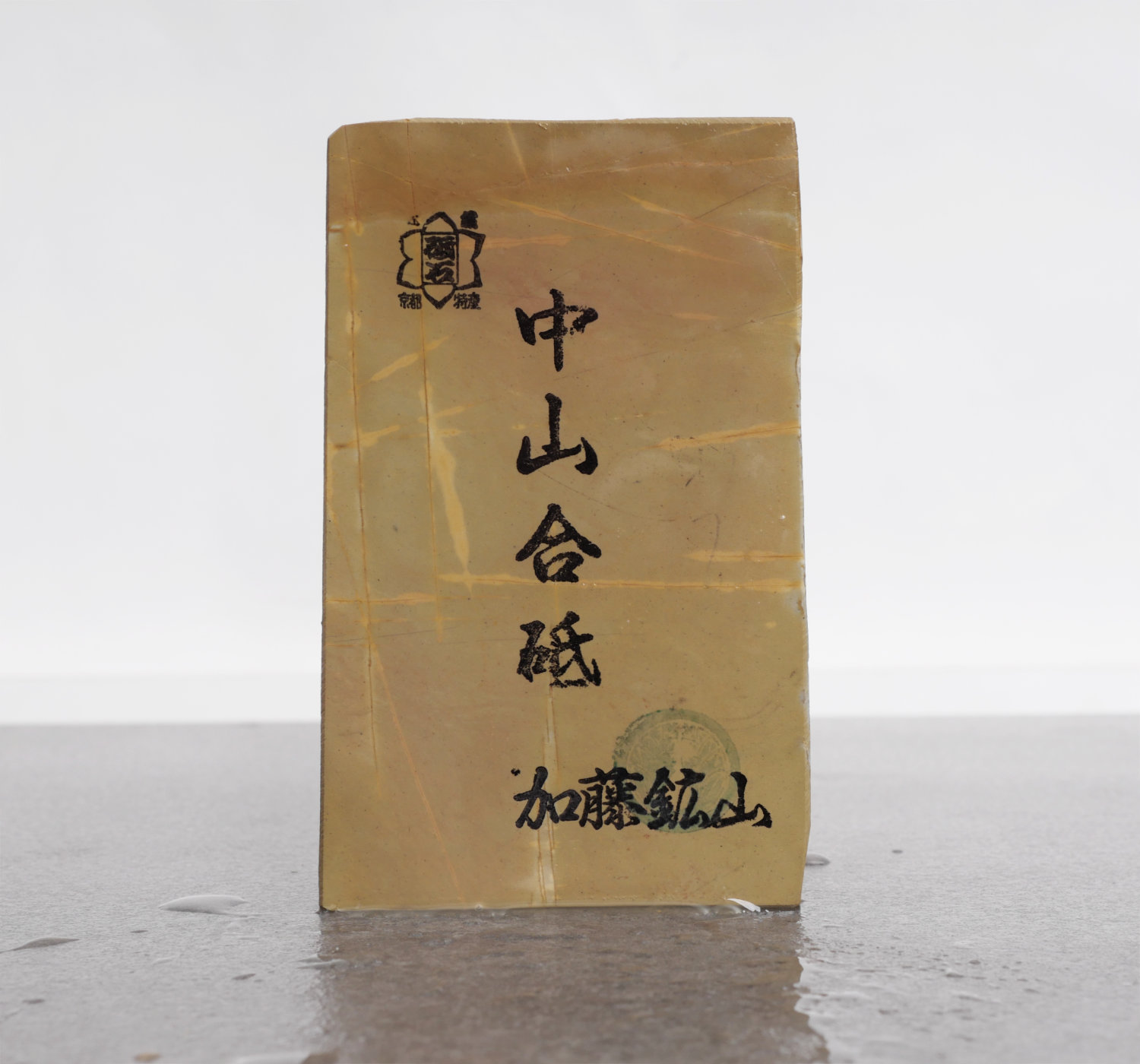 A hard and creamy Nakayama natural stone, perfect for kasumi polishing, which creates a high contrast between the jigane (soft iron) and hagane (hard steel).