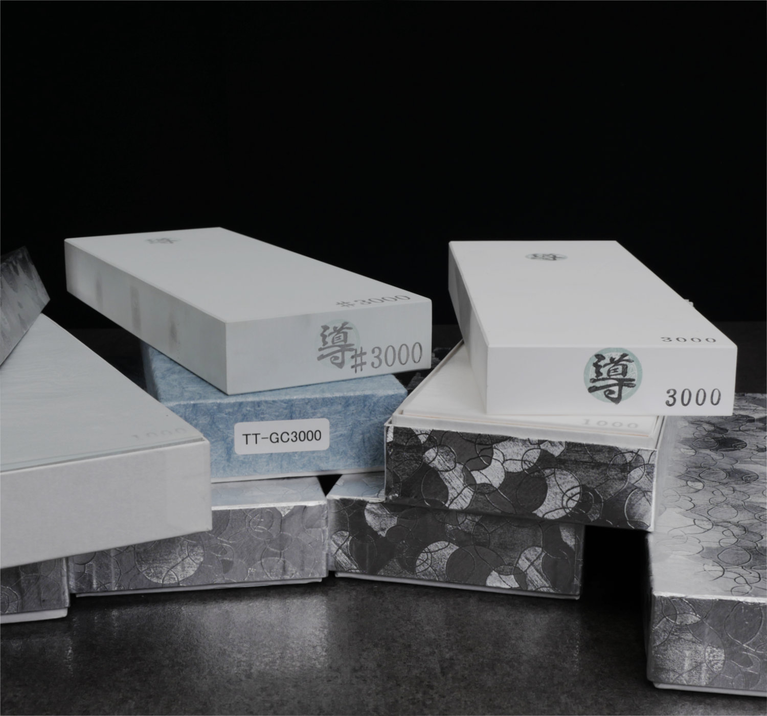 GC - Green Silicon Carbide, sometimes called “Green Carbon” or simply “GC”, is a harder, sharper abrasive that removes material quickly, ideal for thinning or enhancing contrast in kasumi finishes.