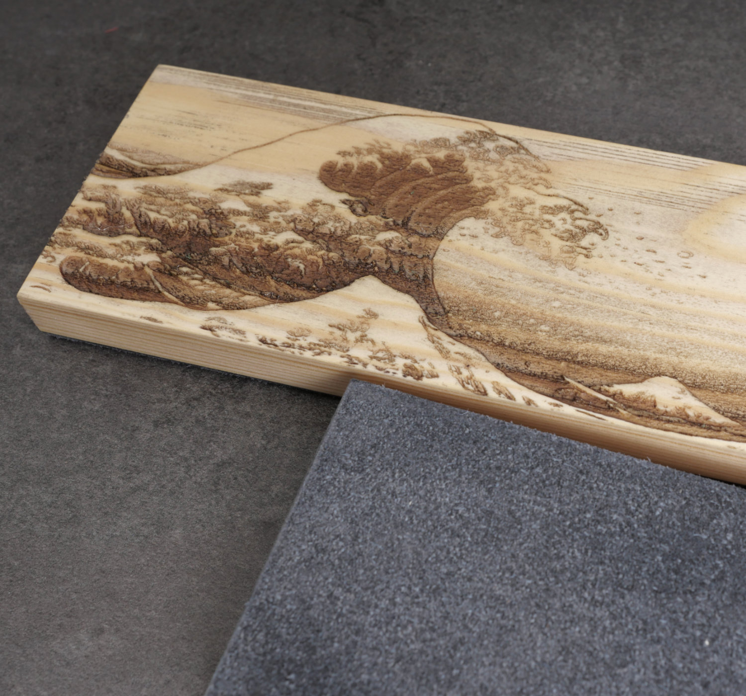 Mounted on a base of Swedish pinewood. The bottom of the stropping block is laser engraved. The wood base has been treated with mineral oil and beeswax for both protection and a lustre.